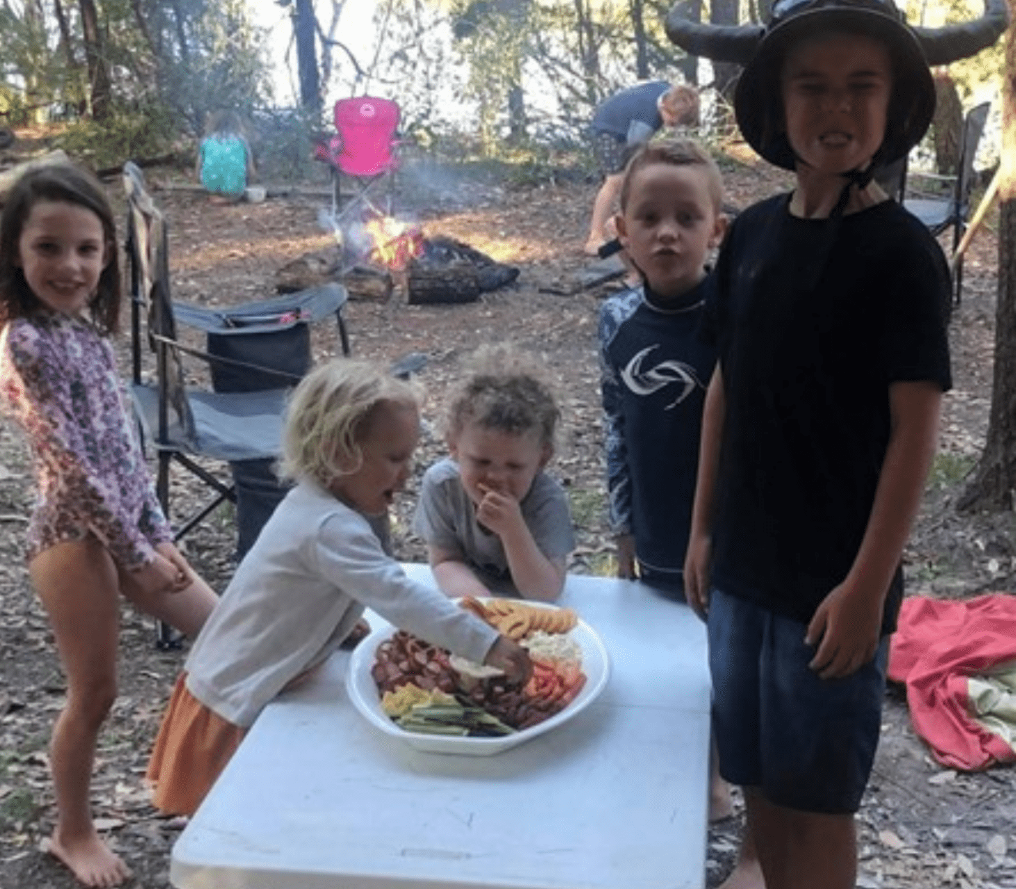 - Finger food platter; I love this one for when we are camping with friends. The kids always pillage our cheese platter taking all the good stuff like little seagulls!. So, we came up with a plan. We all bring something to add to a ‘kids platter’. We make it fun and exciting – it must appeal & please. Things like carrot sticks, cucumber sticks, capsicum slices, cheese cubes, cherry tomatoes, dip, pretzels, strawberries, blueberries, popcorn, rice crackers, fruit kebabs, cabanossi, cut up muesli bars, tiny teddies, chips etc… It’s a funny thing when kids see other kids eating something they normally wouldn’t eat; they tend to be more inclined to try it too. They all love their little communal platter and the banter between them while they sit to eat and chat is just too cute.