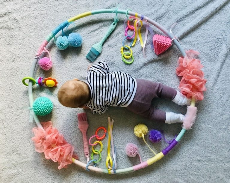 Another brilliant idea I have seen people do for smaller babies is a hula hoop sensory circle –